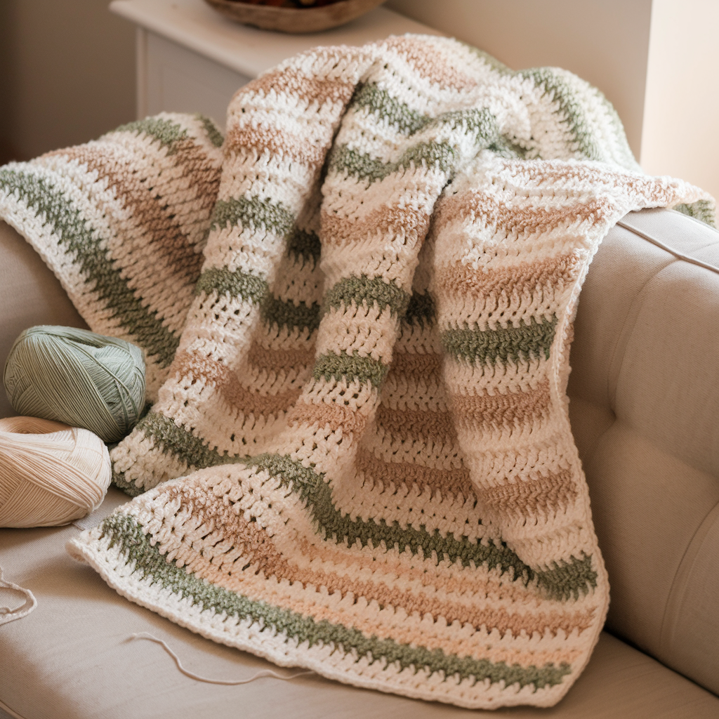 2. Crochet Beginner-Friendly Striped Blanket Pattern