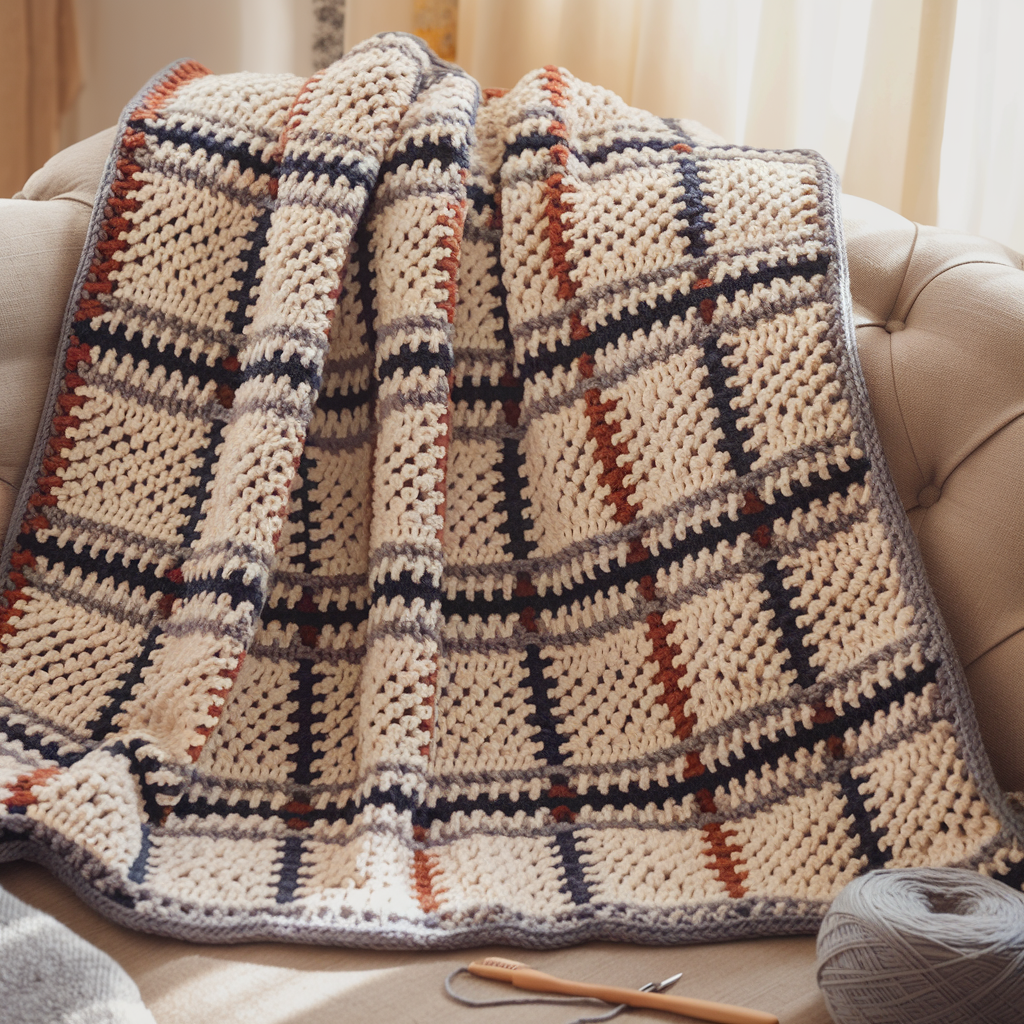 - A simple 2–3 round sc or hdc border in the main color will frame the plaid beautifully.