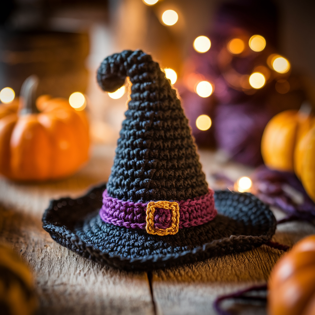 - Ch 2, 6 sc in 2nd ch (6). R2: inc (12). R3: sc 1, inc (18). Continue increasing until hat base matches head circumference (~18–22 sc). Work even for tall hat (10–12 rounds) then decrease slightly to create a cone. Add a brim: attach at base and work sc across in BLO to make a neat rim or add a ruffle. Add embellishments: a bat applique, skull button, or embroidery; add wired edge inside brim to shape.