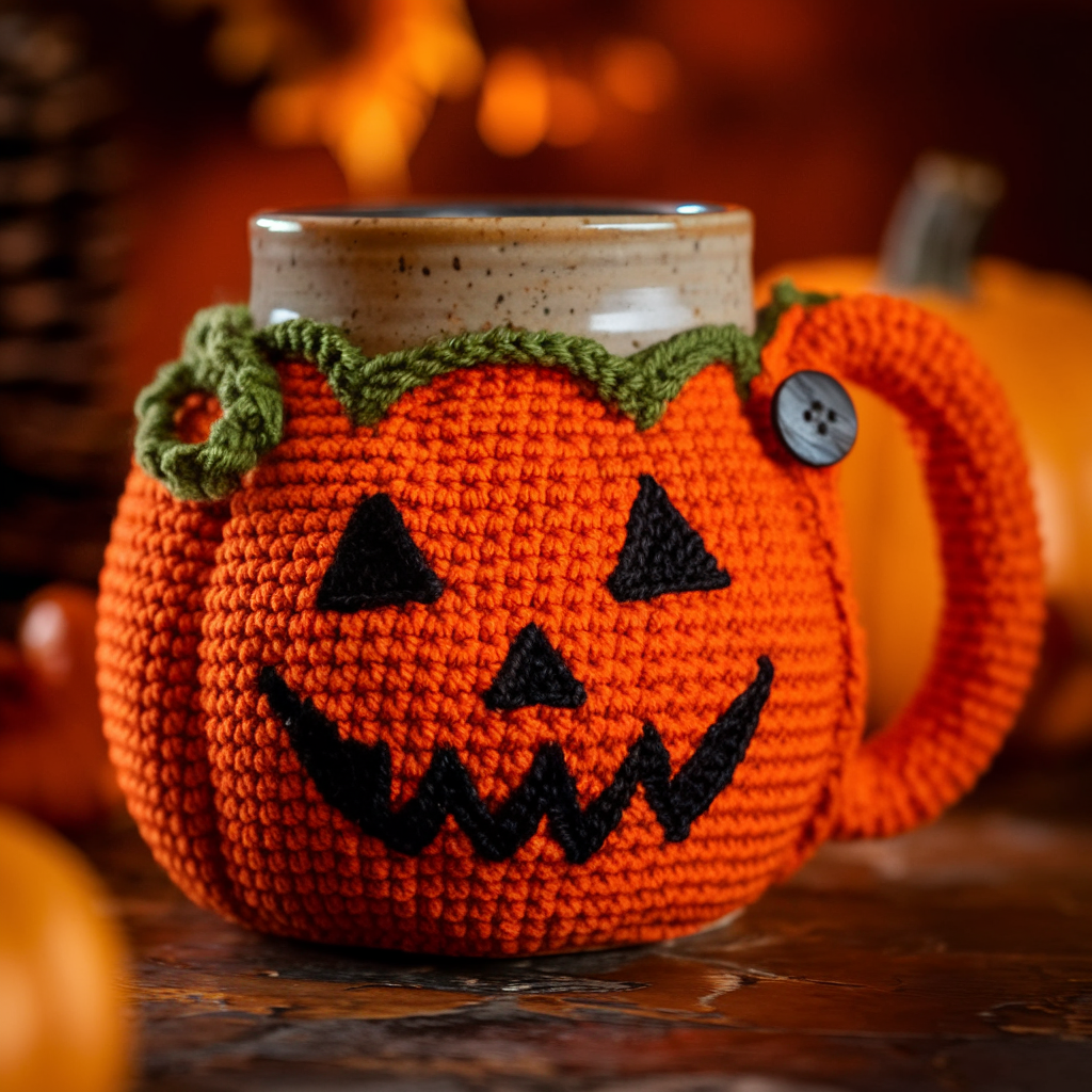 1. Crochet Halloween Pumpkin Mug Cozy Pattern